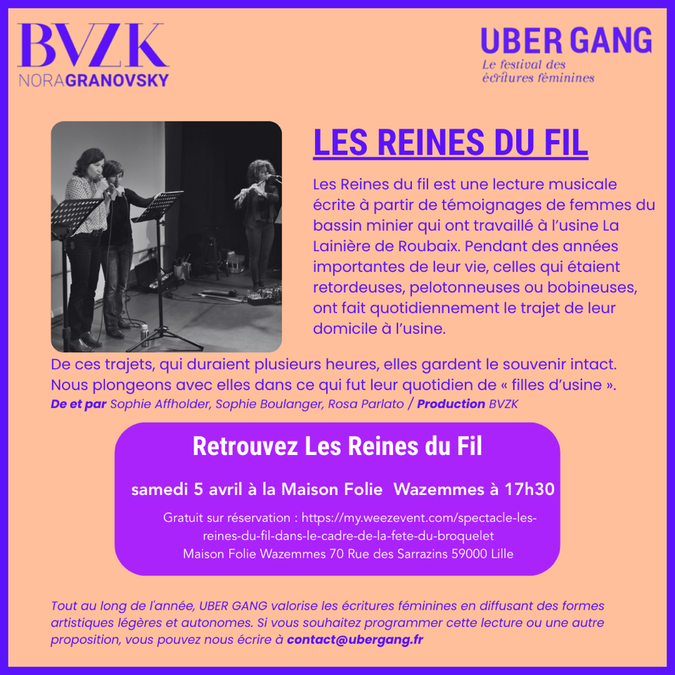 Les Reines du fil / UberGang Festival #7 à la MFW le 5/04à 17h30 (Cie BVZK)